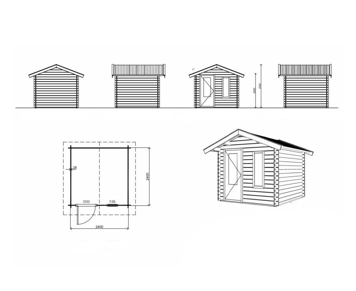 Neliela, askētiska dārza mājiņa, kas izgatavota no 45mm bieza sausa profilēta kokmateriāla, montēta pēc tapas-rievu sistēmas. Brusu savienojumu vietas montētas pēc vēja aiztures tehnoloģijas, tādejādi aizturot vēju, mitrumu un aukstumu.