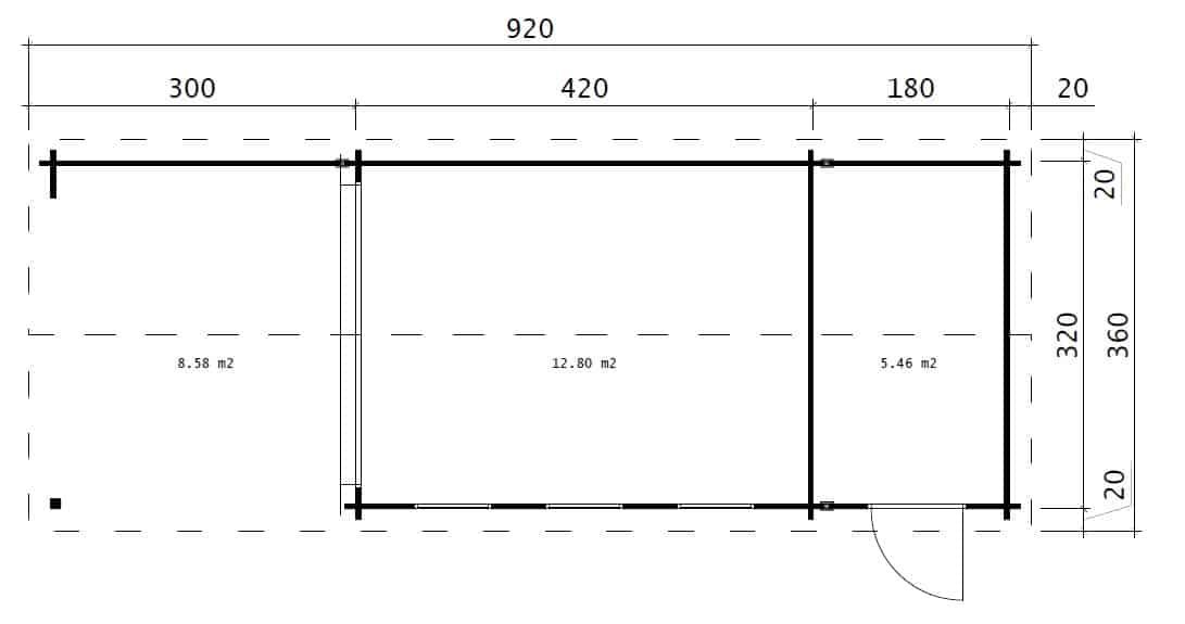 Neliela, askētiska dārza mājiņa, kas izgatavota no 45mm bieza sausa profilēta kokmateriāla, montēta pēc tapas-rievu sistēmas. Brusu savienojumu vietas montētas pēc vēja aiztures tehnoloģijas, tādejādi aizturot vēju, mitrumu un aukstumu.