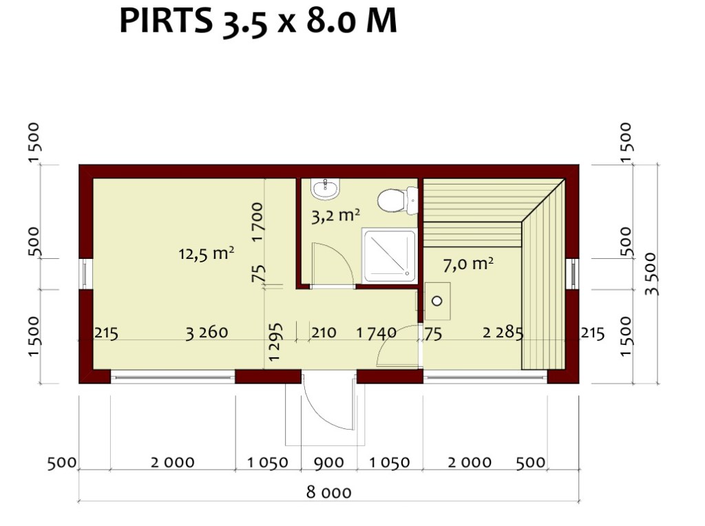 Izmērs 3,5m x 8m
