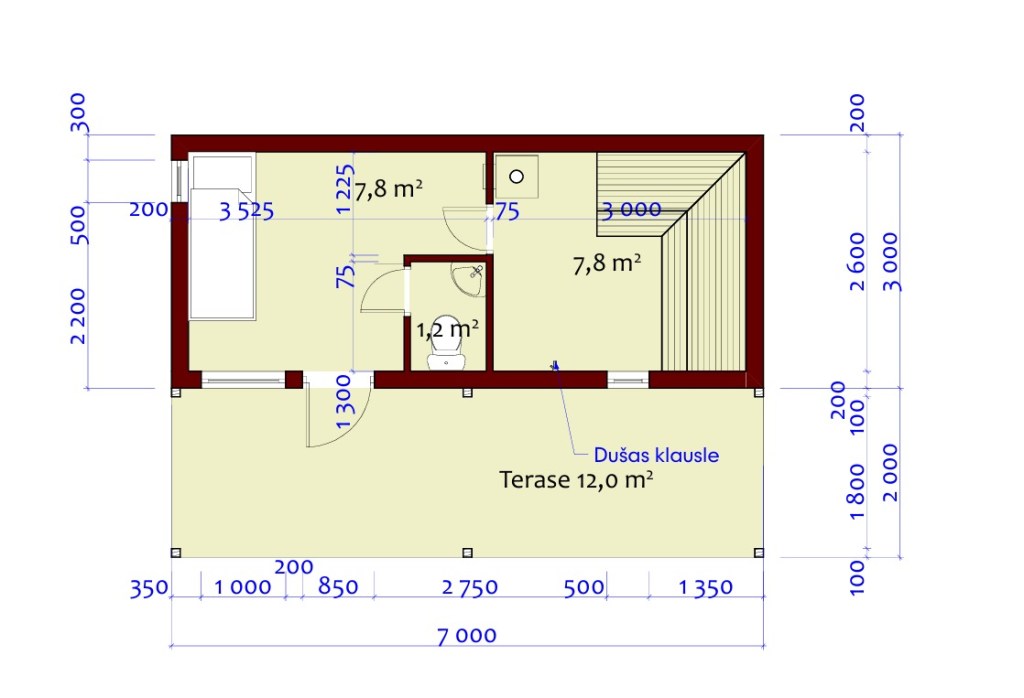 Platība 21 m2 + 14m2 terase