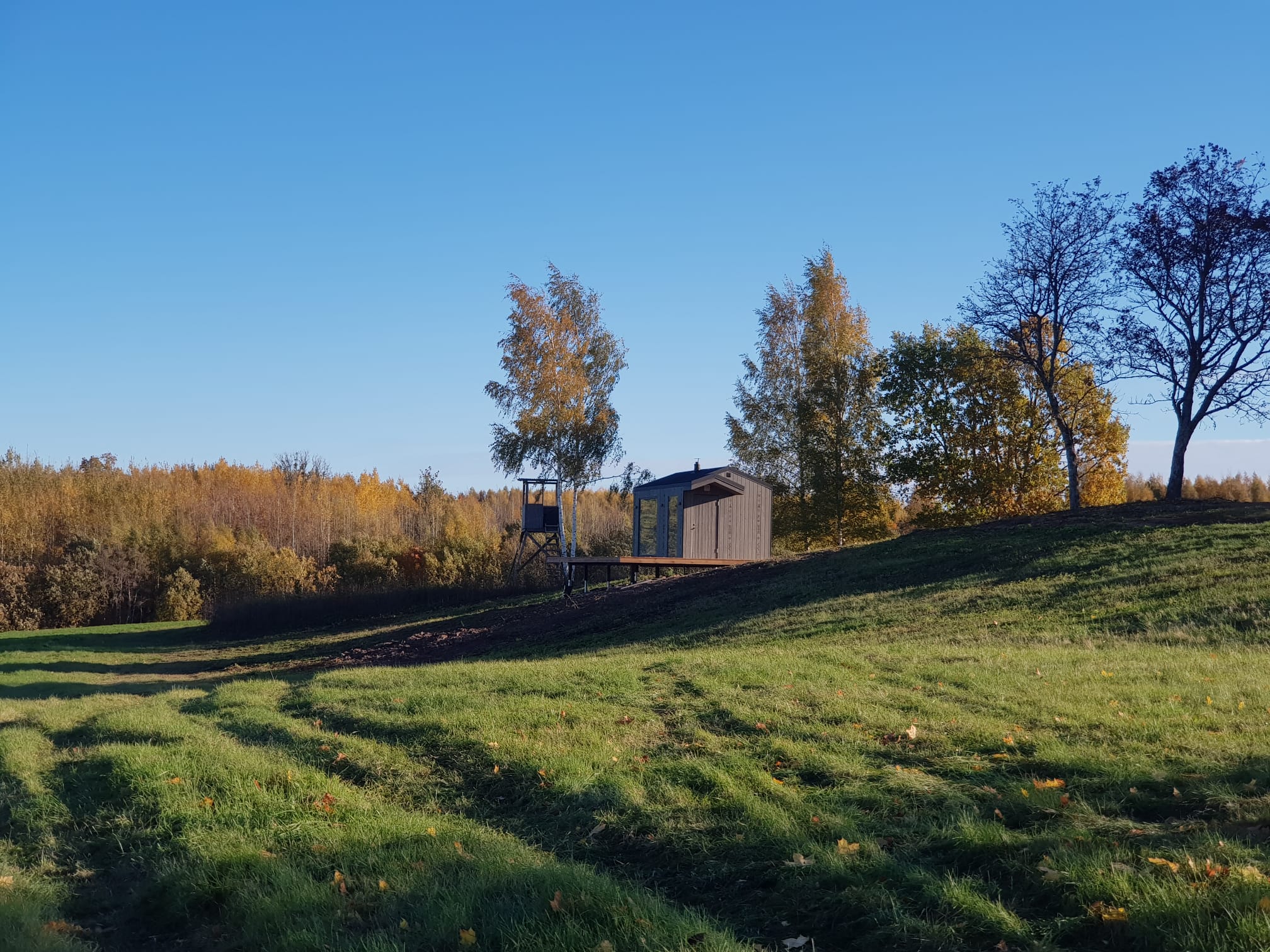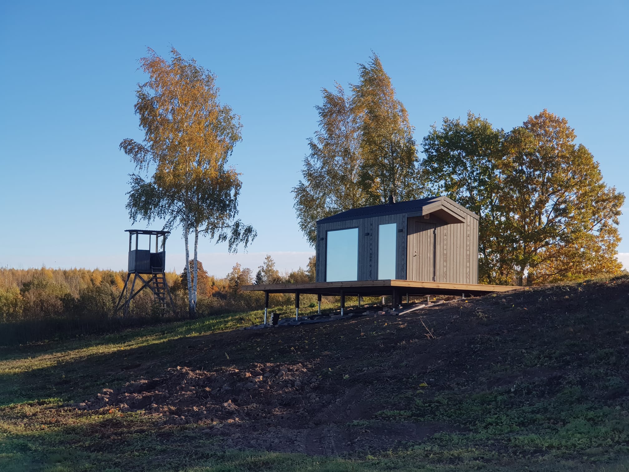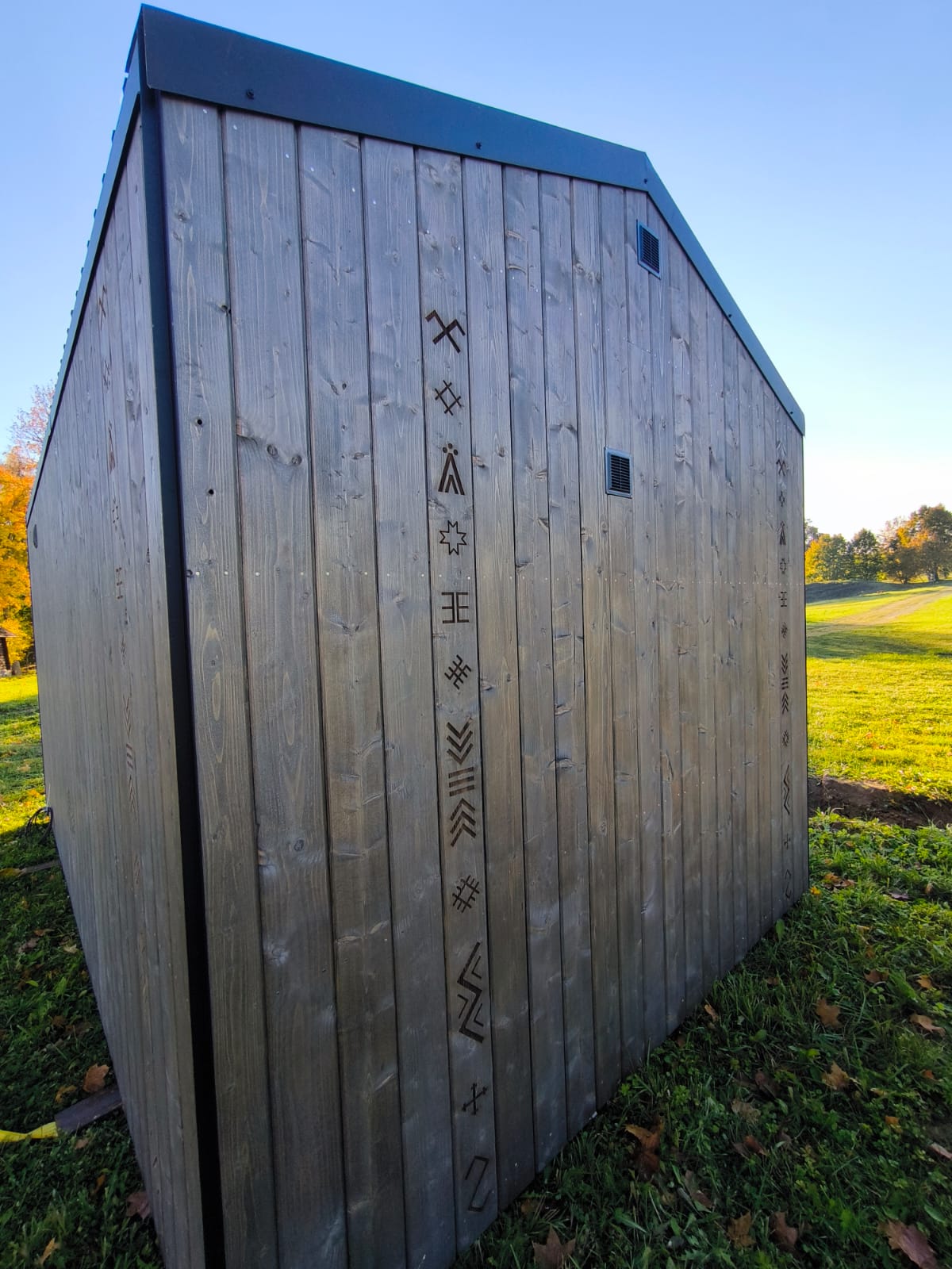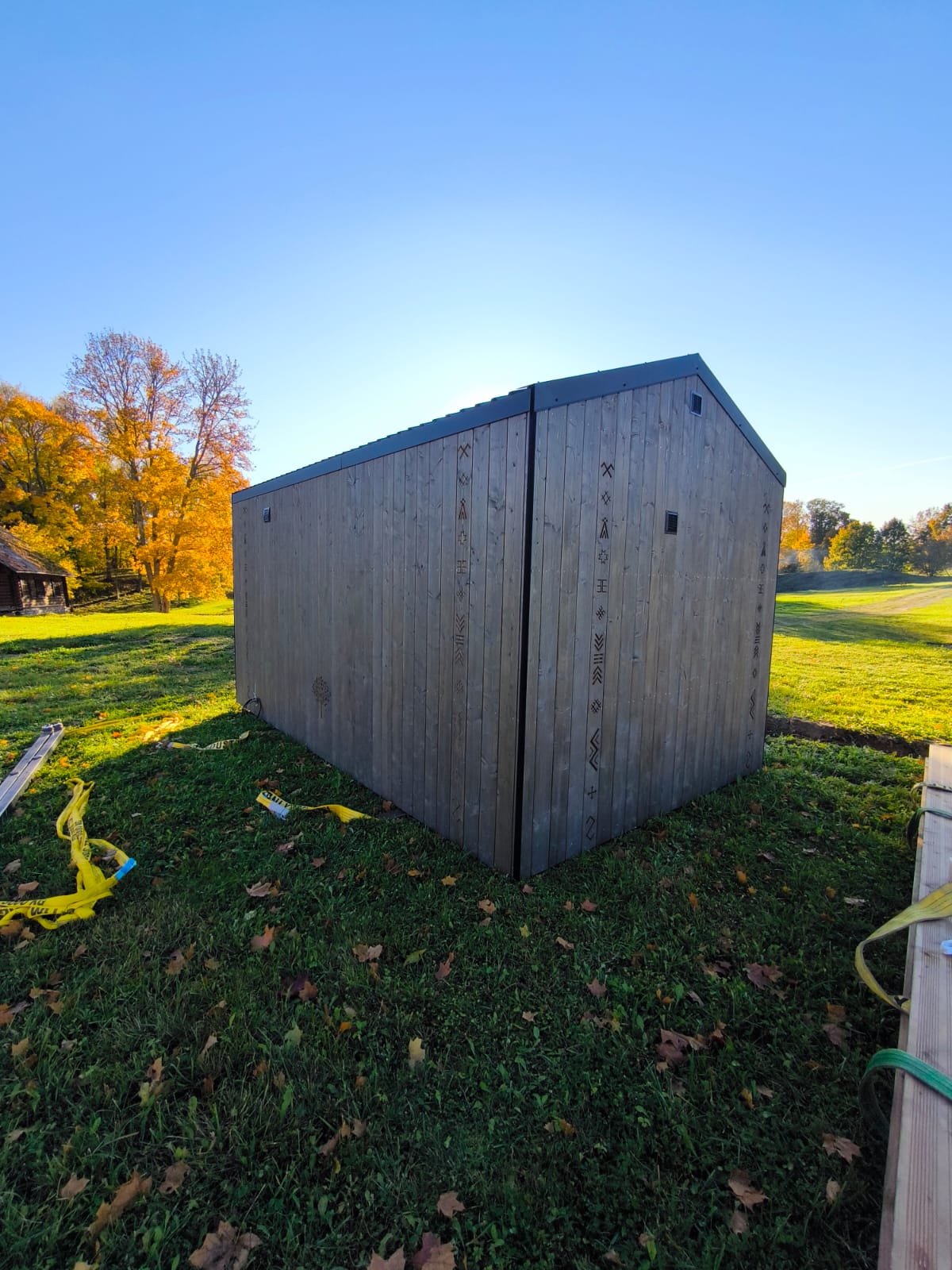 Neliela, askētiska pirts, kas izgatavota no 45x95mm bieza kalibrēta kokmateriāla un 100mm minerālvates. Augstas kvalitātes grafīta apdare, smalki zāģēti apdares dēļi ārējā apdarē. Follija siltuma atstarojoša izolācija pirts telpā. Lapu koka (liepas) apdare pirts telpā – tonēta balta un termokoka dēļi akcentam. Pirts telpā akmens masas flīžu grīdas segums, kritums uz trapu. Lapu koka (liepas) lāvas ar dekoratīviem gravējumiem melnalkšņa dēlī. Atpūtas telpā bērza saplākšņa apdare tonēta balta un pelēka, grīdā – lamināta segums (33.noturības klase). Lieli vitrīnas logi ar tonējošu 95% spoguļplēvi. Metāla jumta segums ar poliuretāna pārklājumu. Dušas telpā kompozītmateriāla sienas apdare, akmens masas flīžu grīdas segums, telpa aprīkota ar dušu un attālināti vadāmu boileri ar pretaizsalšanas funkciju. Ūdens sistēmas caurules aprīkotas ar sildošo vadu, pasargājot no ūdens cauruļu sasalšanas. Malkas pirts krāsns, ražota Latvijā pēc TANTUM pasūtījuma. Nerūsējoša tērauda skurstenis. Divpunktu dabīgā ventilācija. Dekoratīvi latvju rakstu un dabas elementu gravējumi. LED gaismas lampas ar dizaina elementiem.