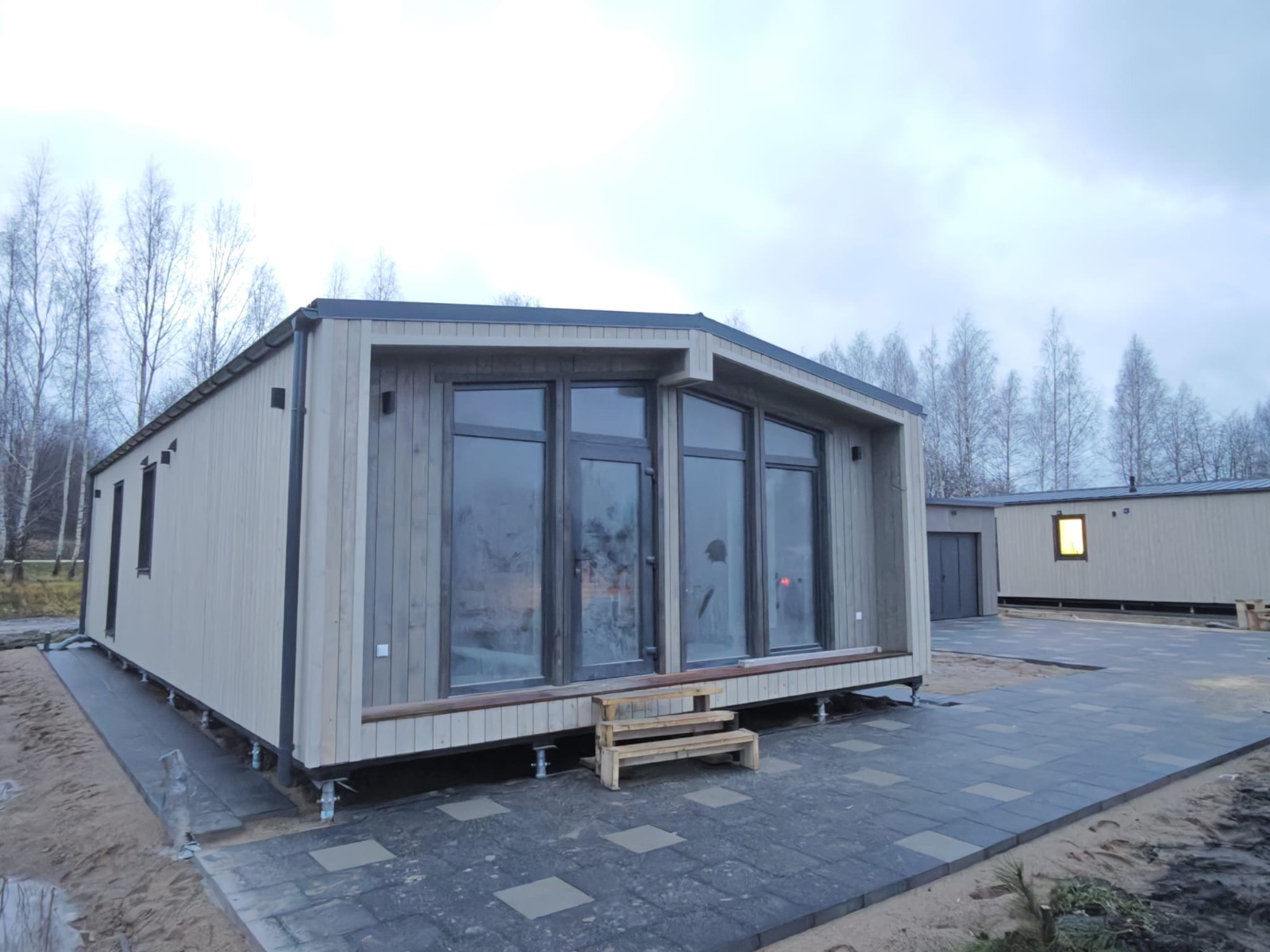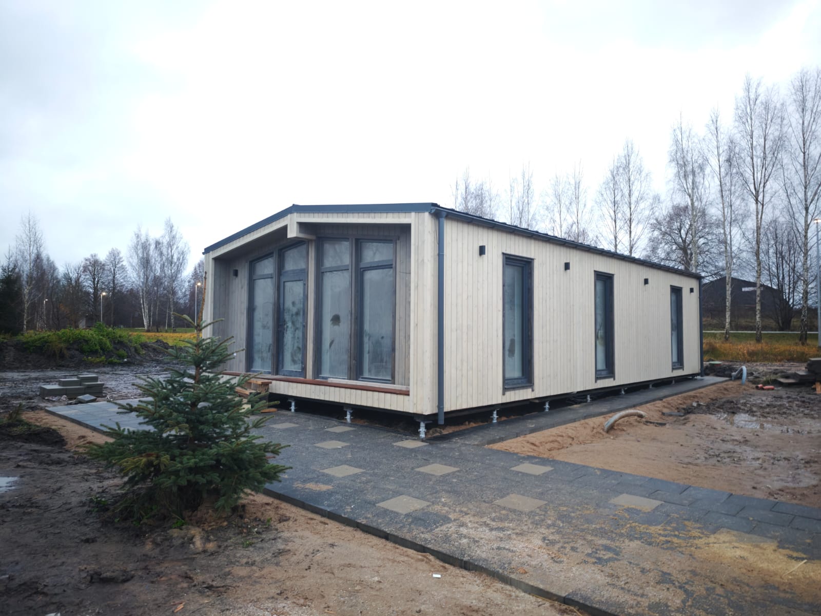 Included in the price finished exterior, roofing, sewage system till the foundation, water, electricity.